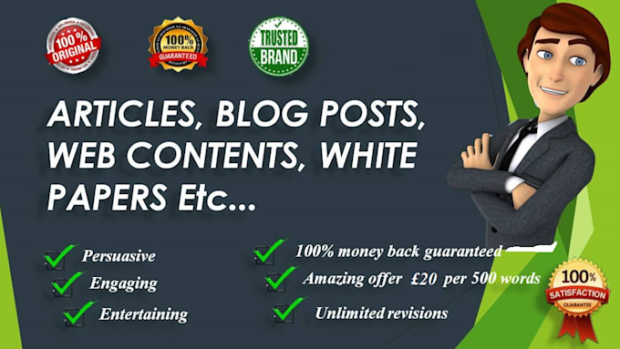 I will write original and authentic SEO articles, blog posts